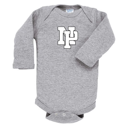 Infant Long-Sleeve Onsie - White NP Logo, Black Outline