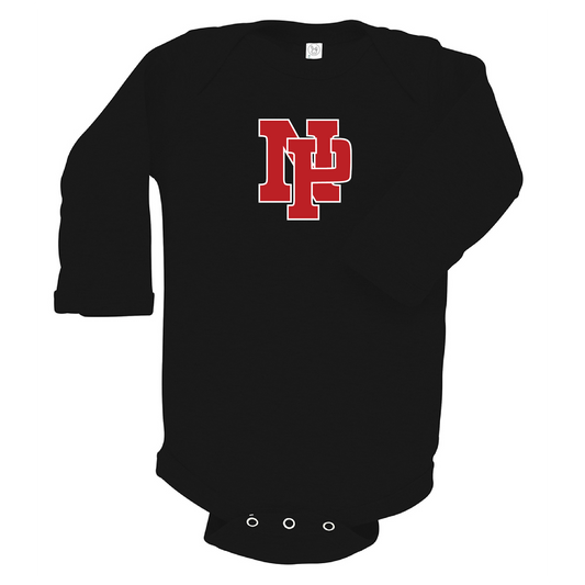 Infant Long-Sleeve Onsie - Red NP Logo, White Outline