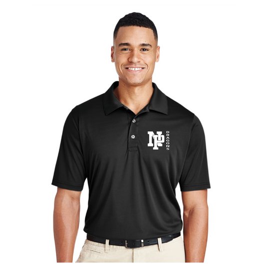 Mens Performance Polo - White NP Dragons, Side by Side