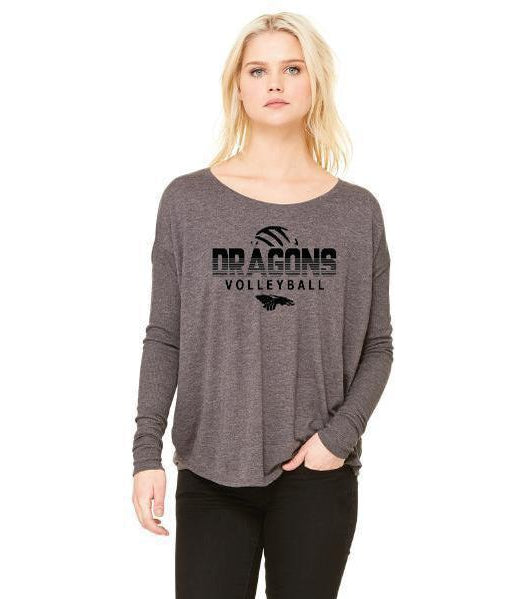Womens Flowy Long Sleeve T-Shirt - Dragons Volleyball