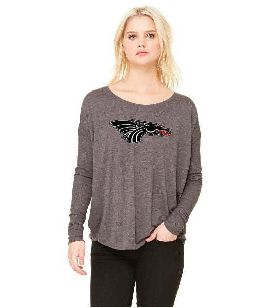 Womens Flowy Long Sleeve T-Shirt - Black Dragon Head Logo