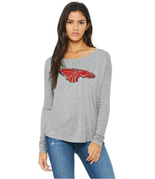 Womens Flowy Long Sleeve T-Shirt - Red Dragon Head Logo