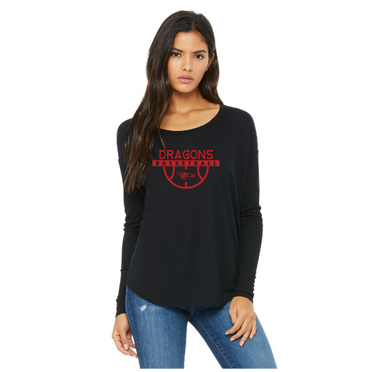 Womens Flowy Long Sleeve T-Shirt - Dragons Basketball